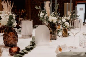 Profitiert von unserem Verleih an umfangreichen Dekorationsartikeln. Bei uns findet ihr Vasen, Kerzenhalter, Sitzpläne oder anderen stilvolle Accessoires für euer Event.